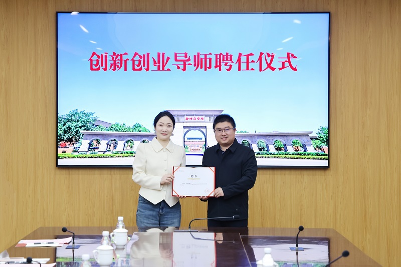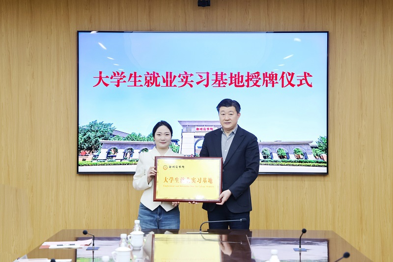 在参会人员的共同见证下,校长吴泽强向刘鹏阁董事长授“大学生就业实习基地”牌匾,校长助理泥川向刘鹏阁董事长颁发“创新创业导师”聘书。