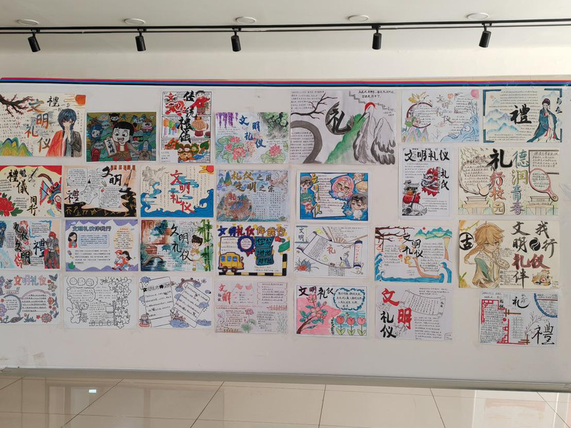 活动吸引了全校学生的积极参与,共征集作品百余幅。从童趣涂鸦到深度思考,每一份手抄报都凝聚了同学们对礼仪的独特见解。手抄报内容涵盖社会主义核心价值观、校园行为规范、公共场合礼仪等,既强化了文明意识,也提升了学生的审美与综合实践能力。通过亲手制作,大家更深刻地理解了“不学礼,无以立”的内涵。