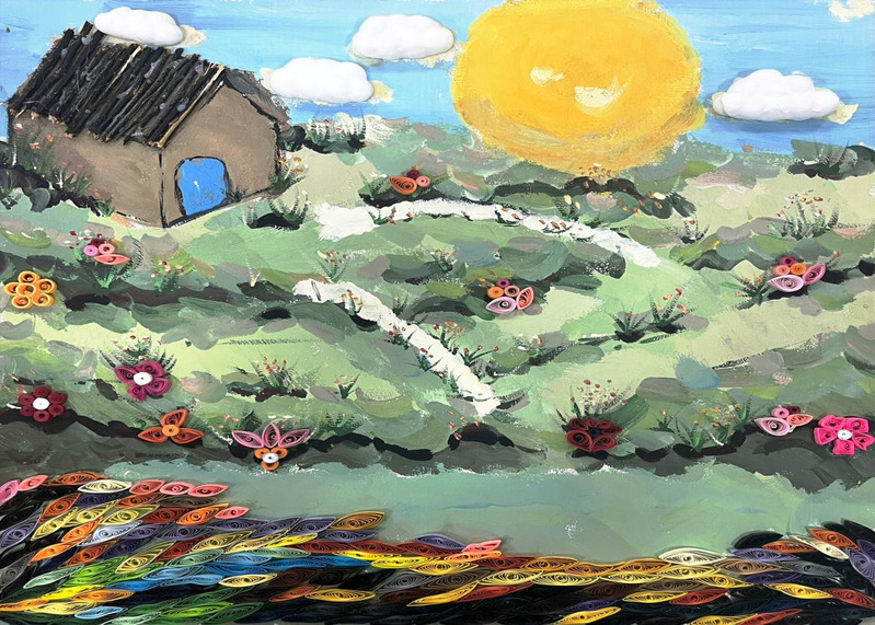 在本次拼贴画活动中,同学们巧妙地运用环保材料,将春日的生机与对祖国的深情融入每一幅拼贴画中。这些风格多样,创意十足的作品,不仅充分展现了同学们的艺术才华和对美的独特理解,更是他们对祖国热爱之情的真挚表达。以下是本次活动推选出的部分优秀拼贴画作品: