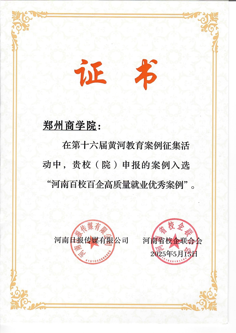 会上,我校在第十六届黄河教育案例征集活动中,申报的案例《“六位一体”构建就业闭环以高质量就业服务助力高质量充分就业》入选“河南百校百企高质量就业优秀案例”。这一荣誉的获得,是对我校对外宣传和就业工作成效的高度认可。