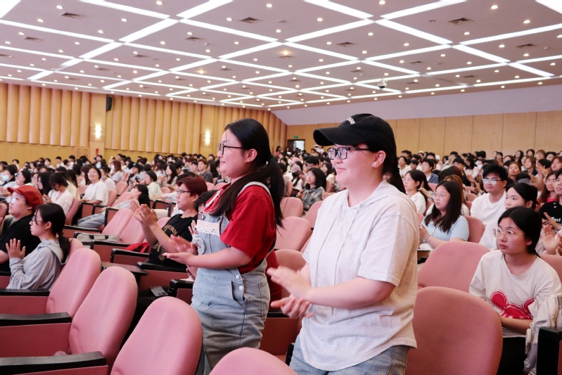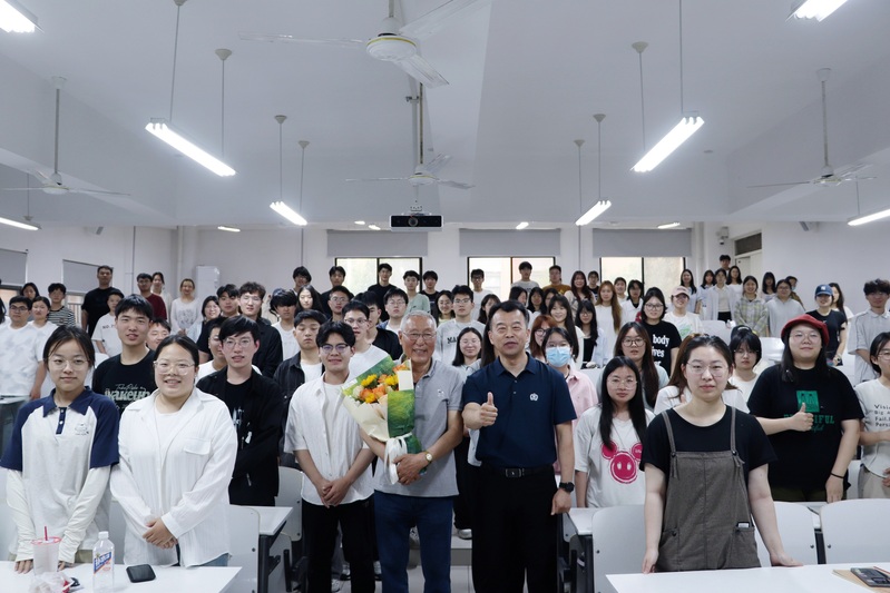 在结课发言中,学生纷纷表示了对张教授的敬意和感谢,并期待能够有机会再次聆听张教授的课程;最后,同学们都争相与张教授合影、献花,表达着对老师的感谢与不舍之情。