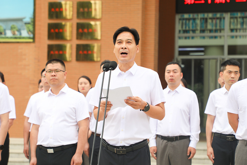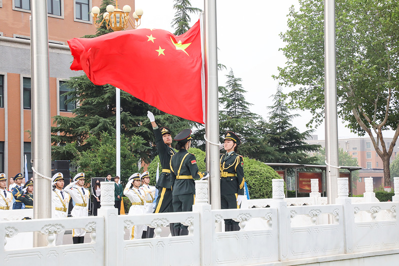 校党委书记吴建军在讲话中对第二十届国旗护卫队圆满完成使命表示祝贺,对第二十一届国旗护卫队寄予厚望,望其传承优良品质,捍卫国旗尊严。吴书记结合习近平总书记对青年的寄语,向同学们提出三点希望:心怀“国之大者”,让理想与时代同频共振;脚踏实地,做能吃苦的新时代好青年;勇于追梦圆梦,让理想在实践中开花结果。最后,号召广大郑商学子学习习近平总书记在河南考察时的重要讲话精神,在民族复兴征程上勇担先锋、奉献青春。