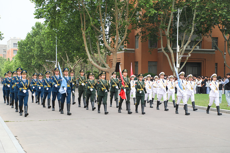 5月27日早晨,我校第二十届、第二十一届国旗护卫队交接仪式暨表彰大会在图书馆门前举行。校党委书记吴建军、董事长助理陈宗纬、校党委副书记兼纪委书记裴晓涛、校党委组织部部长邢坤、统战部部长陈幸可、宣传部部长程文质、学工部部长路程、各学院党委书记、各学院团委书记及国旗护卫队全体成员出席活动。大会由校团委书记张鹏主持。