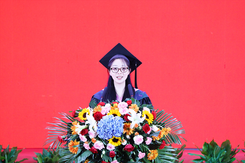 教师代表、会计学院孙文特老师代表全体教职工祝2025届毕业生顺利毕业;在校生代表、大数据学院常景飒同学代表全体在校生致欢送辞;2025届毕业生代表、管理学院高畅鸿同学代表全体毕业生致答谢辞。