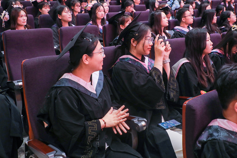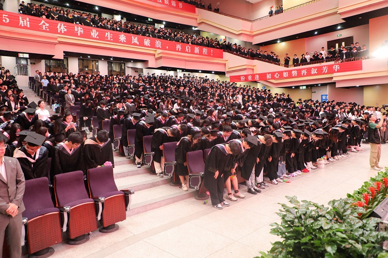全体毕业生向师长行谢师礼,深鞠一躬表达敬意与感谢,感恩母校与师长的教诲和培养。