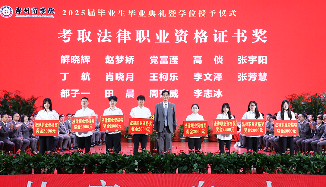党委书记吴建军为“考取法律职业资格证书奖”的学生颁奖