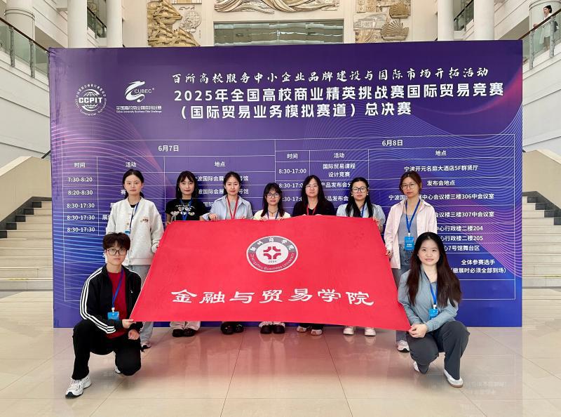 6月7-8日,作为“百所高校服务中小企业品牌建设与国际市场开拓”活动的重点项目,2025年全国高校商业精英挑战赛国际贸易竞赛(国际贸易业务模拟赛道)总决赛在宁波国际会展中心盛大举行。本次竞赛吸引了全国198所高等院校408支队伍3300余名参赛选手和指导教师参赛。我校2022级国贸专业7名学子组成参赛队伍在张莉和李雪艳老师的指导下,凭借扎实的专业功底、创新的展位设计和出色的业务磋商能力,荣获全国总决赛团体二等奖。