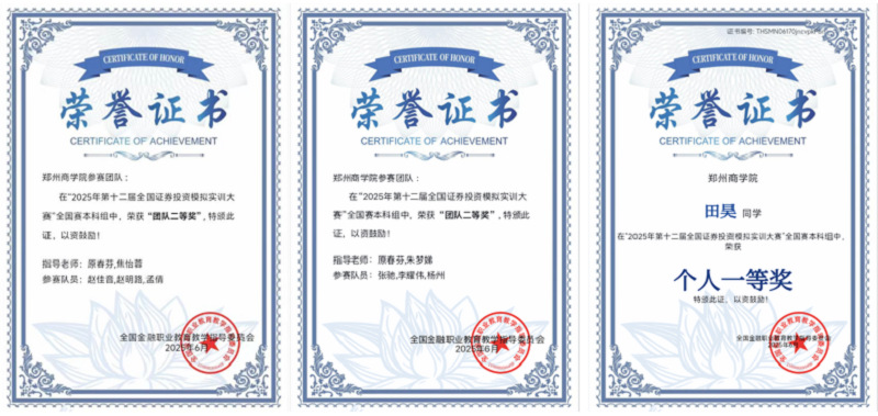 近日,由全国金融职业教育教学指导委员会主办的第十二届全国证券投资模拟实训大赛圆满举行。该赛事团队赛本科组吸引了4276支队伍踊跃参与,个人赛本科组有24184名选手同场竞技。我校金贸学院朱梦娣、原春芬等老师带领投资、保险等专业学生组织49支队伍参加团队赛和54人参加个人赛,在经过激烈的角逐后,共获得团队一等奖1项、二等奖3项、三等奖8项;个人一等奖4项、二等奖4项、三等奖5项。