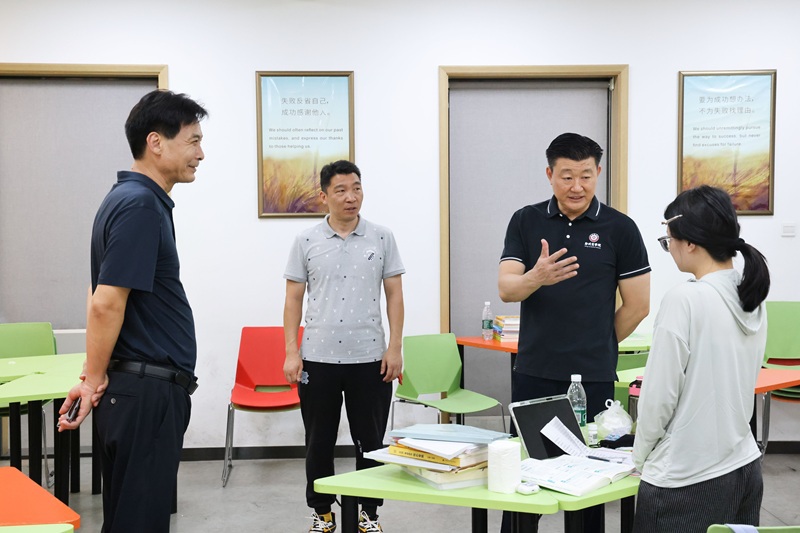 校领导走进学生自习室和宿舍,与留校复习的学生亲切交谈,详细询问了同学们的学习计划、生活需求等,鼓励同学们珍惜暑期时间,合理安排作息,保持良好的学习状态,为即将到来的学业挑战做好充分准备。校领导表示,学校将全力做好学业指导和后勤保障,为同学们创造良好的学习和生活条件。