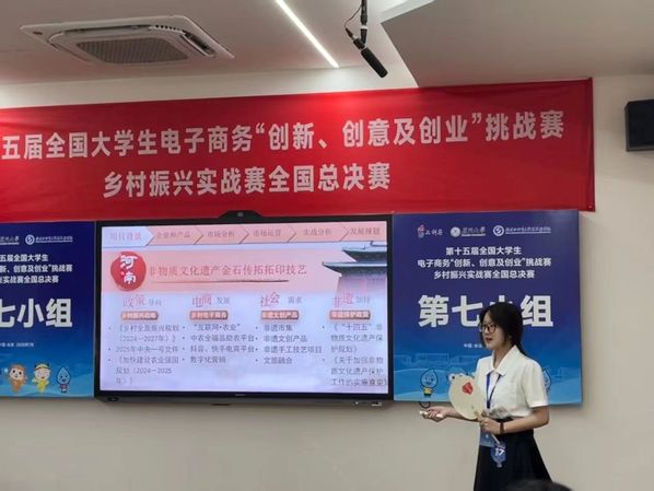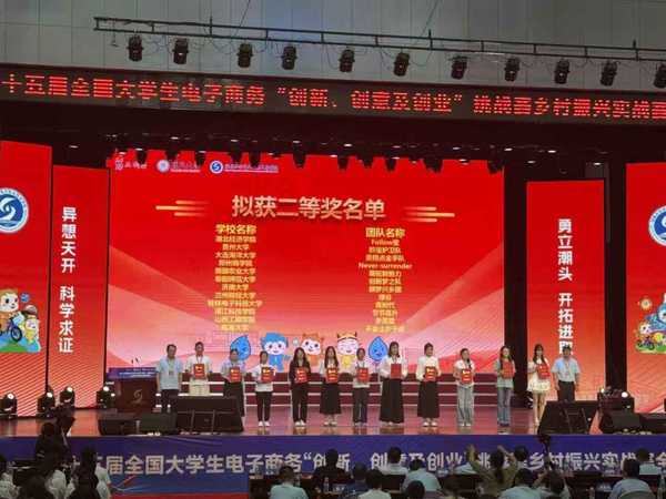 近日,第十五届全国大学生电子商务“创新、创意及创业”挑战赛乡村振兴实战赛全国总决赛在福建举行。本届赛事吸引了全国近千所高校近32万支参赛队伍报名,我校“金石拓荒”团队(队长:张默涵,组员:张慧卓、张家辉、李米霖,指导老师:王玉、李真真)凭借扎实的专业功底与默契的团队协作,在激烈竞争中脱颖而出,斩获国赛一等奖;“Never-surrender”团队(队长:王敏,组员:丁则瑞、关亚格、李冰洁、姜幸言,指导老师:张珊珊、段田园、刘尚坡)斩获国赛二等奖。