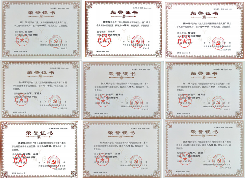 近日,河南省教育厅、中共河南省委网络安全和信息化委员会办公室联合发布第九届“御网杯”网络安全大赛获奖名单通知,我校共斩获线上赛一等奖3项、二等奖5项、三等奖7项,线下赛团队二等奖2项。