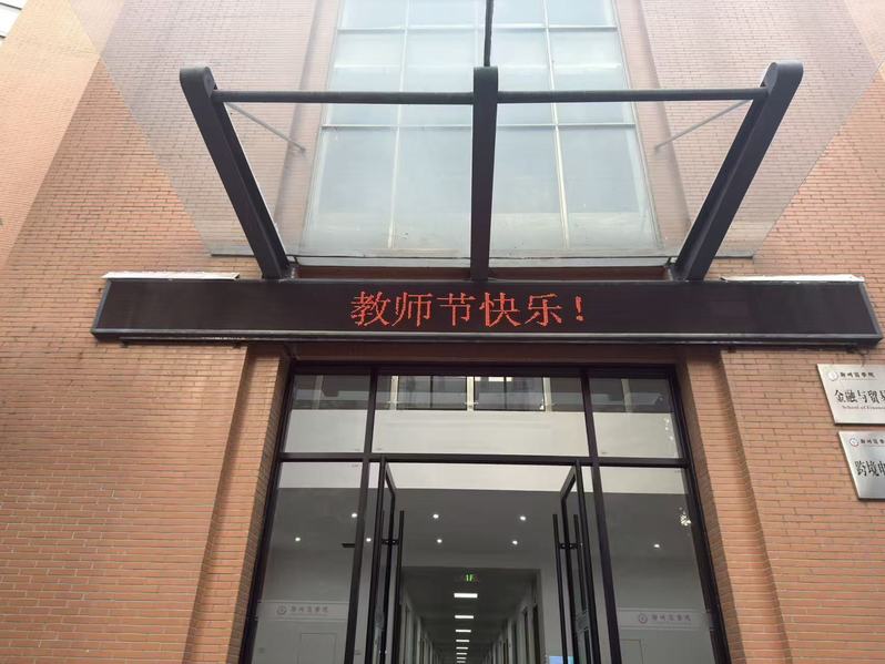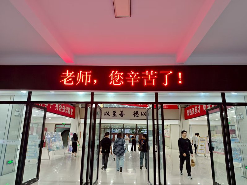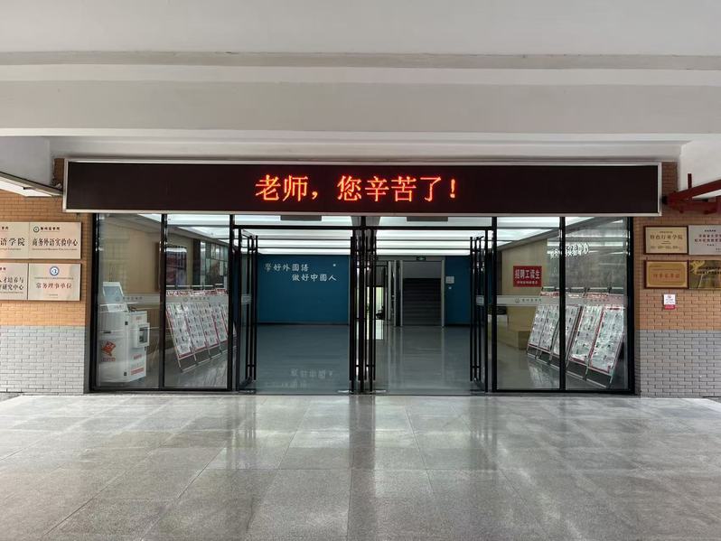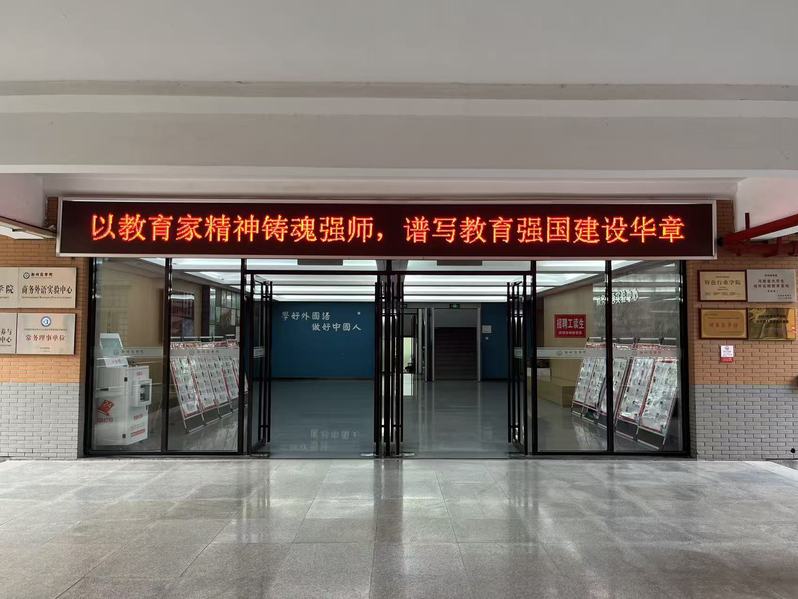 为响应河南省教育厅《关于开展 2025 年度“为教师亮灯”公益活动的函》要求,9月10日当天学校行政楼、图书馆、各二级学院LED屏同步亮灯,全天候滚动播放“老师,您辛苦了!”“老师,您好!”等主题标语,让“尊师之光”闪耀校园每一个角落,切实增强广大教师的荣誉感与幸福感,积极营造全社会尊师重教的浓厚节日氛围。