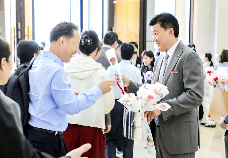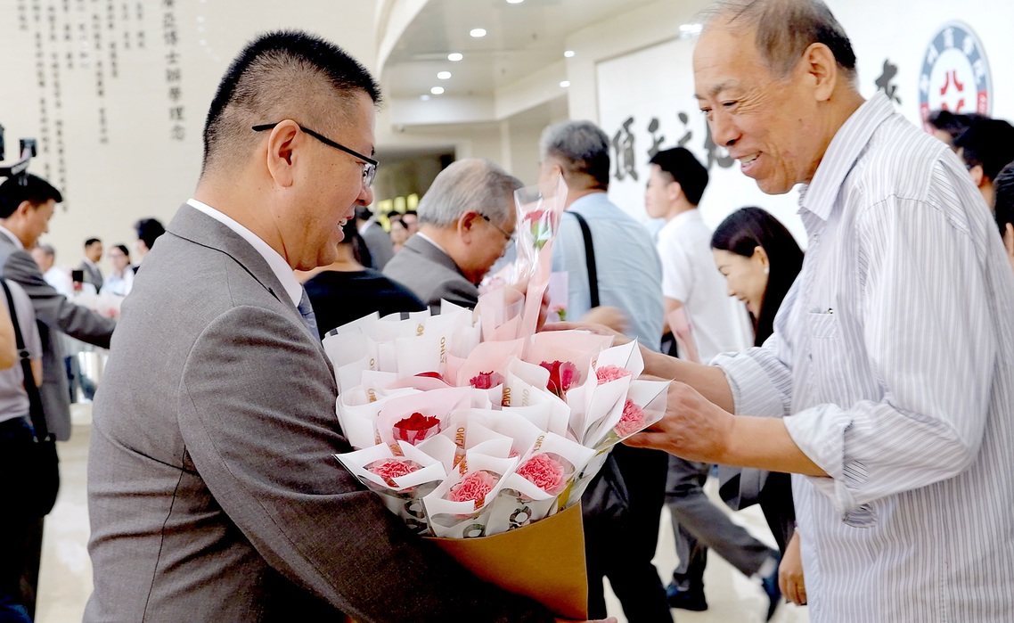 9月9日,在全校教职工大会现场,董事长王育华带领全体校领导亲手为每一位教职工送上象征敬意与祝福的康乃馨,以温馨的方式传递学校对教职工的关怀。