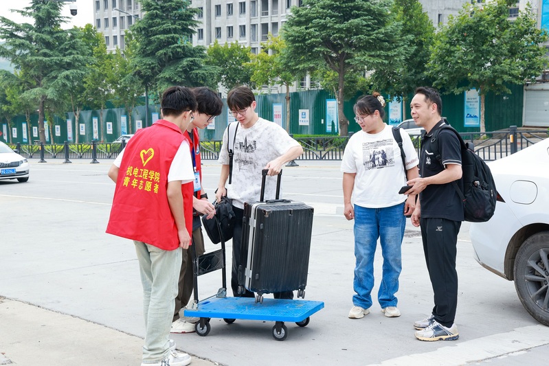 面对新生与家长的期待,各学院新生辅导员和助理辅导员全程在线,始终耐心、热情地解答着每一位学生与家长的问题。宿舍楼下,会计学院辅导员付高原始终忙碌着,从校园环境、设施建设,到专业课程设置与未来发展,他一一向家长介绍,用行动诠释着“让家长放心,让学生安心。”报到期间,阴雨连绵,学校始终牵挂着新生的出行安全,通过多种渠道发布天气预警和安全提示,并做好学生提前或延后报到的准备,管理学院辅导员谢佳音说:“学校暑期就提前组建了新生群,多次讲解入学报到注意事项及所需携带的材料,精准统计每位学生的预计到校时间,为后续高铁、火车接站服务做好了充分准备。报到期间所有迎新服务将风雨无阻地持续运行,确保每一位新生都能顺利安全到校。”
