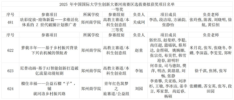 近日,河南省教育厅正式公布中国国际大学生创新大赛(2025)河南赛区选拔赛结果,我校参赛团队在该项高水平赛事中共4个项目荣获省级奖项,其中一等奖1项、三等奖3项。