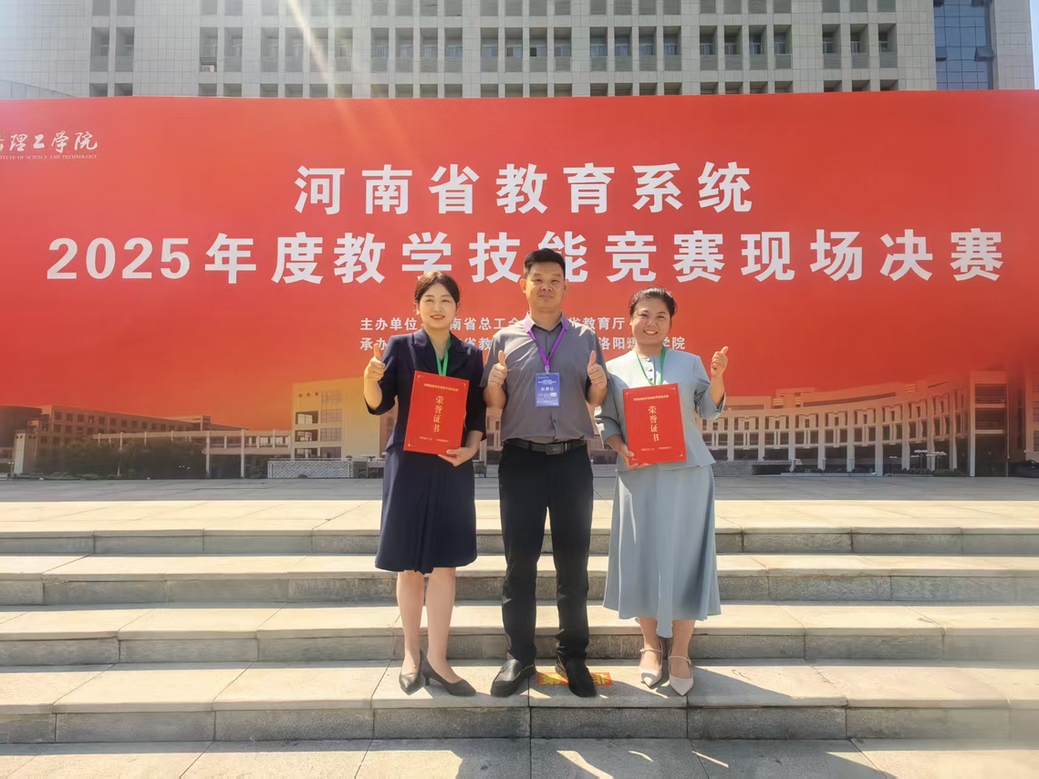 近日,由河南省总工会、河南省教育厅主办,河南省教科文卫体工会和洛阳理工学院承办的河南省教育系统2025年度教学技能竞赛高校组现场决赛在洛阳顺利举行。我校教师在2025年全省教学技能竞赛中,荣获一等奖4位、二等奖3位、三等奖2位的优异成绩。