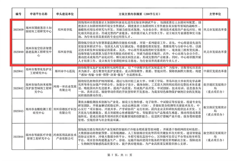 日前,《郑州市发展和改革委员会关于郑州市智能视频算法与物联网应用工程研究中心等68家市工程研究中心的批复》(郑发改高技〔2025〕338号)文件印发,我校组织申报的“郑州市低空经济智慧基建监测工程研究中心”和“郑州市固废基岩土加固材料工程研究中心”成功获批,标志着我校在市级科研平台建设方面取得重要进展。