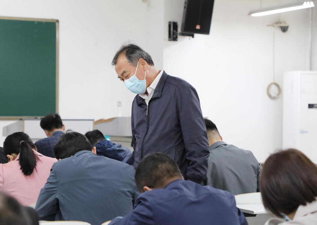 为进一步提升学校领导干部理论学习的实效,切实增强领导干部学习的自觉性和主动性,进一步落实上级部门关于疫情防控工作部署,夯实校园常态化疫情防控体系,强化校园疫情防控主体责任,切实做到守土有责、守土担责、守土尽责,4月14日下午,我校举行了第一季度中层干部理论测试。校党委书记马书臣、校长吴泽强、党委副书记裴晓涛深入考场巡考。