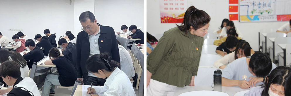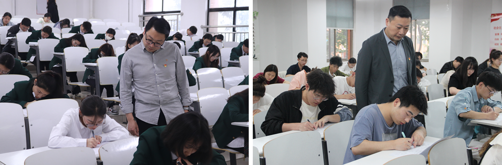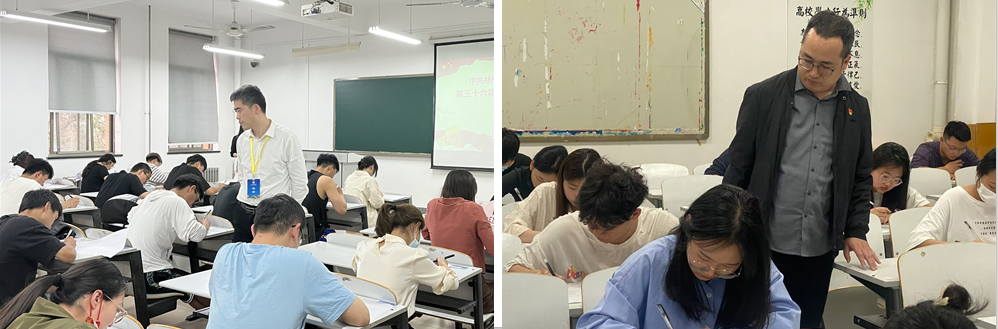 考试伊始,监考人员对考试注意事项进行了说明,强调了考试的规范性和严肃性,要求考生认真答题、诚信考试。此次考试采取闭卷形式进行,考题紧扣习近平新时代中国特色社会主义思想、党史党章、党员发展流程等党的基本知识,以及党的二十大和全国两会精神等相关内容,要点全面、结构合理、紧贴时政。考试过程中,考生态度端正,严守考场纪律,考场秩序井然,充分展现了我校入党积极分子自信、沉稳的精神风貌。