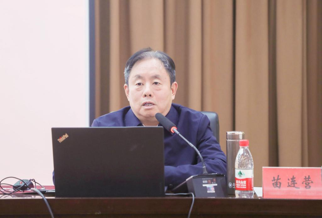 11月9日下午,我校举行“百名法学家百场报告会”法治宣讲暨党委理论学习中心组(扩大)学习报告会,特邀郑州大学法学院院长、博士生导师苗连营教授莅校,作题为“深入学习贯彻习近平法治思想,开启新时代法治中国建设新征程”宣讲报告。全体校领导、校党委理论学习中心组成员、学校依法治校领导小组成员和各单位主管、副主管、全体辅导员等参加报告会。报告会由党委副书记兼纪委书记裴晓涛主持。