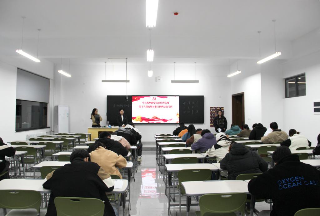 此次结业考试采取闭卷答题的形式进行,重点考察党员发展对象对习近平新时代中国特色社会主义思想、党的二十大精神、党史、党章和时政热点等党的基本理论知识的理解和掌握。开考前,监考老师强调了考试纪律和注意事项,要求考生全程自觉、独立完成答题,杜绝一切违纪、违规行为。考试期间,全体考生秉持诚信考试的原则,态度端正、认真答题,以饱满的精神状态和充足的知识储备完成了此次考试。