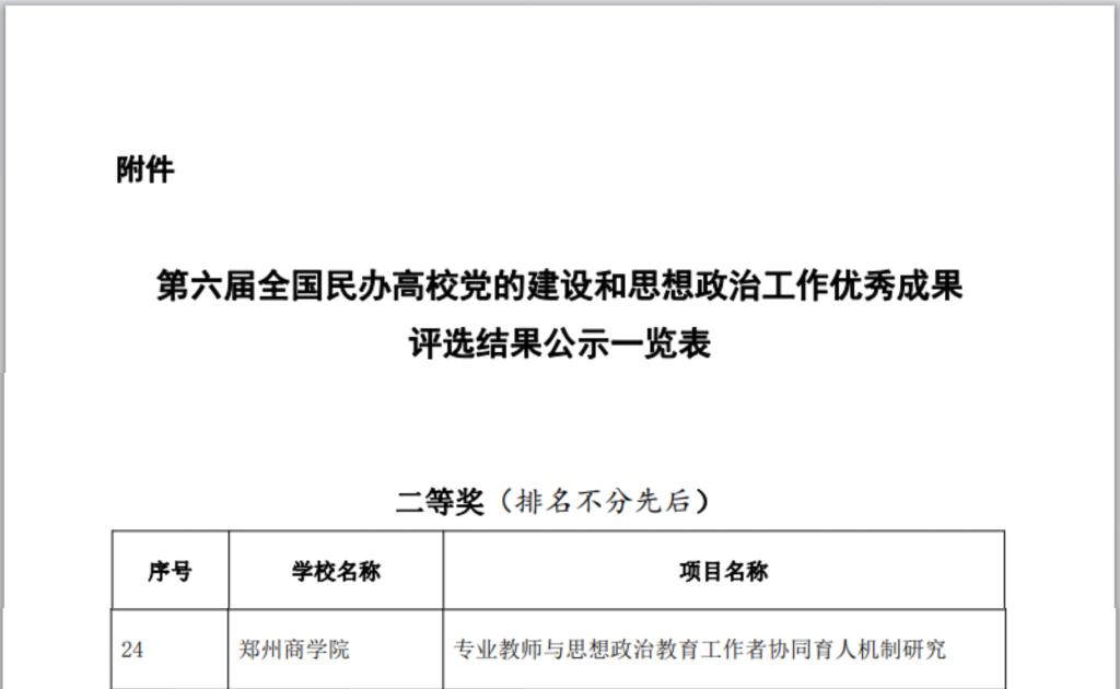 近日,由教育部思想政治工作司指导,中国民办教育协会党建专业委员会主办组织开展的第六届全国民办高校党的建设和思想政治工作优秀成果评选结果揭晓。我校会计学院教师王丽娟撰写的经验案例《专业教师与思想政治教育工作者协同育人机制研究》在优秀成果评选中荣获二等奖。