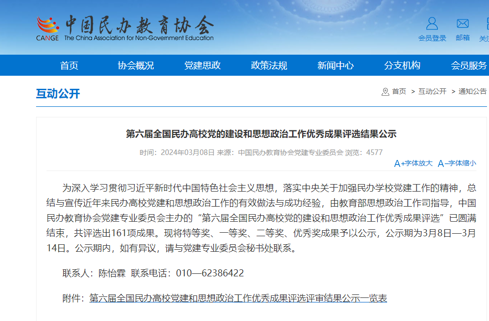 此次评选旨在深入学习贯彻习近平新时代中国特色社会主义思想,落实中央关于加强民办学校党建工作的精神,总结与宣传近年来民办高校党建和思想政治工作的有效做法与成功经验,共评选出161项成果,其中二等奖51项。