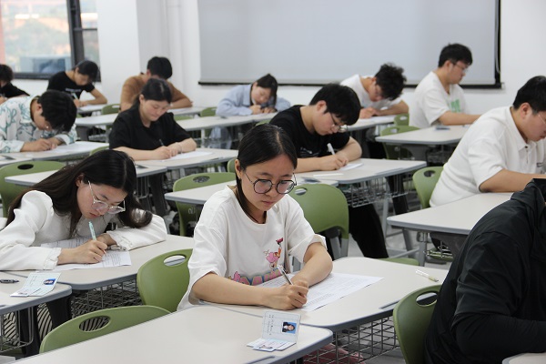 此次考试采用闭卷的形式,重点考察党员发展对象对于习近平新时代中国特色社会主义思想、党的二十大精神、中国共产党党史、《中国共产党章程》以及党纪学习教育等党的基本理论知识的掌握情况,题型包含选择题、填空题、简答题等。开考前,监考老师强调了考试纪律和注意事项,要求考生严守纪律、诚信考试,全程自觉、独立完成答题。考试期间,监考教师认真巡视考场,确保考试公平公正,考生态度严肃认真,沉着冷静答题,考试全程秩序井然,充分展现了我校学子良好的考试风气。