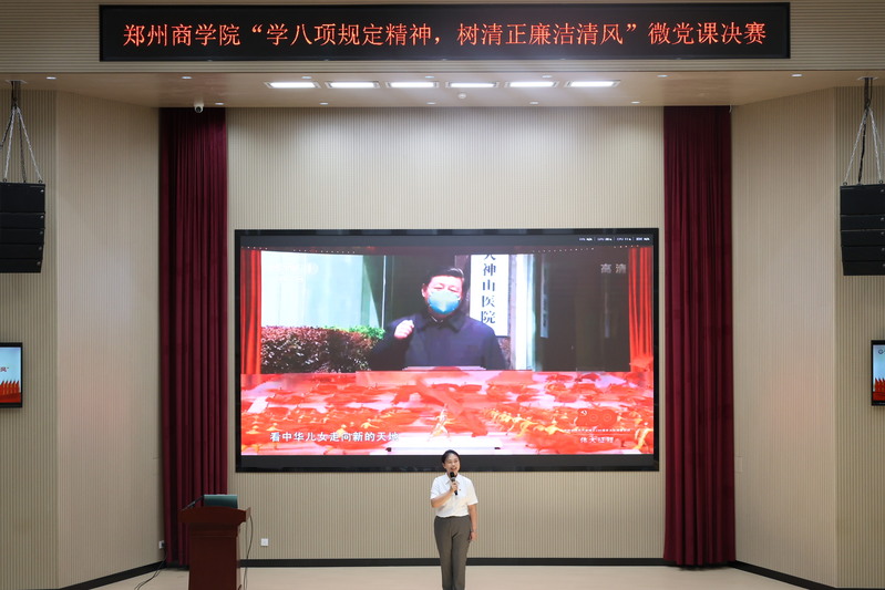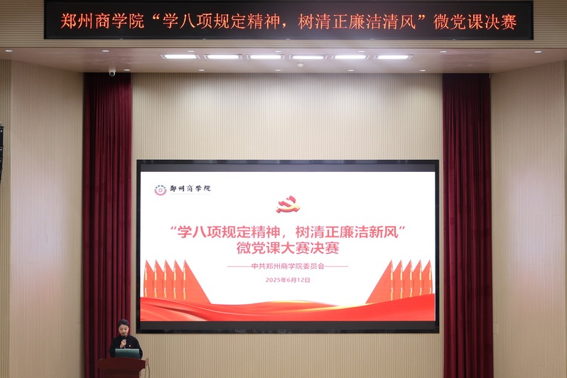 为扎实推进深入贯彻中央八项规定精神学习教育,引导广大党员干部时刻绷紧纪律之弦,营造风清气正、务实担当的发展生态,6月12日上午,由校党委主办、机电学院党委承办的“学中央八项规定精神,树校园清正廉洁清风”微党课决赛在三彩校区躬行楼报告厅顺利举行。党办主任兼党委组织部部长邢坤、各分党委书记、党委组织部副部长孟晗、各党支部书记以及学生党员代表观看了此次比赛。决赛由机电学院党委组织委员杨瑞瑞老师主持。