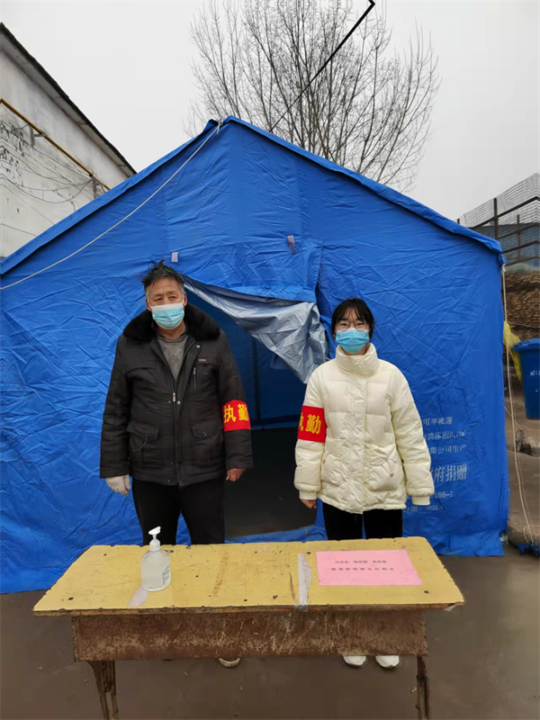 杨倩倩,19工商1班,放假以来,疫情愈来严重,村委的疫情防控工作逐渐开展,主动加入社区疫情防控的队伍,首先参与返乡人员核酸检测的注册登记,在社区居委会将每个人的信息登记注册,确保返乡人员的信息可以第一时间得到记录排查,并在卡点岗位轮换值班,登记过往人员的行程码等防疫信息,并测量体温,统计过往个人信息,告知村民不扎堆不聚集,积极响应防疫宣传内贯彻国家的正确领导方针。她说:“一名合格的大学生,要主动为社会做一些力所能及的事情。疫情无情人有情,大家众志成城,共同抗击疫情,相信黎明的曙光即将照耀在每个人心间!”