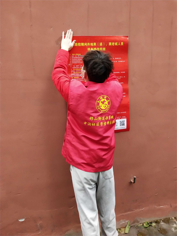 当疫情再次来临时,他毅然决然的报名了志愿者。在党员干部的带领下,开展社区入户排查,并督促居民及时打加强针。他始终相信在政府的带领下,疫情终会消灭。他说:“能够为国家防控疫情做贡献,为一线工作人员减少负担,我感到十分骄傲与自豪,无论何时我都希望在国家和社会需要的时候能挺身而出,为基层疫情防控贡献属于自己的青春力量。”