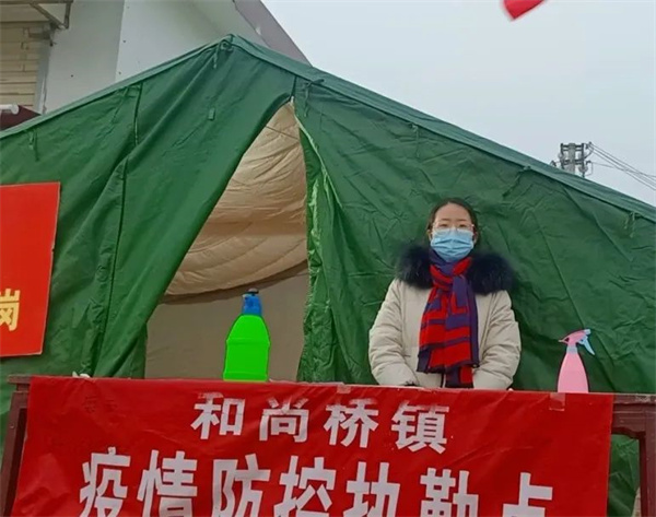 2022年初,河南再次爆发疫情,作为一名大学生,应积极主动担负起相应的责任,为此,她主动担当起责任,参加安阳市内黄县二安镇沙河庄村的防疫志愿者工作,在卡点路口值班,登记来往人员信息,对来往人员进行体温测量等,展示了共青团员为人民服务的宗旨,展现出郑商学子的奉献精神。她说:“青年担当,不怕万人阻挡,即使凝视深渊,却依然心向阳光,我们相信,没有冬天不可逾越,没有春天不会到来,河南加油!”