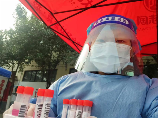 马路萍,19财管5班,自本地爆发疫情以来,作为志愿者自发加入防疫队伍,主要负责在村口引导村民合理出入,规劝村民在家进行自我隔离,服务村民的日常生活需要以及配合村干部引导宣传进行全民核酸检测工作。她说“我很骄傲去干这份志愿者工作,因为它让我更加清楚得意识到了自己的责任,让自己为社会做了力所能及的贡献”。