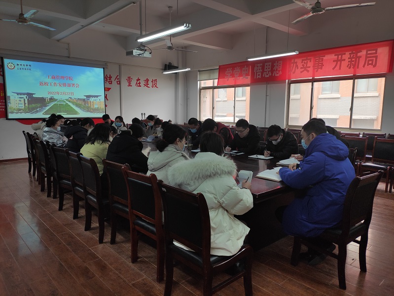 2月22日,工商学院在2号楼二楼会议室召开学生返校工作部署会。党委书记宋森、团委书记董文浩及全体辅导员参加会议。