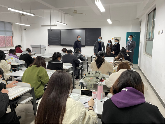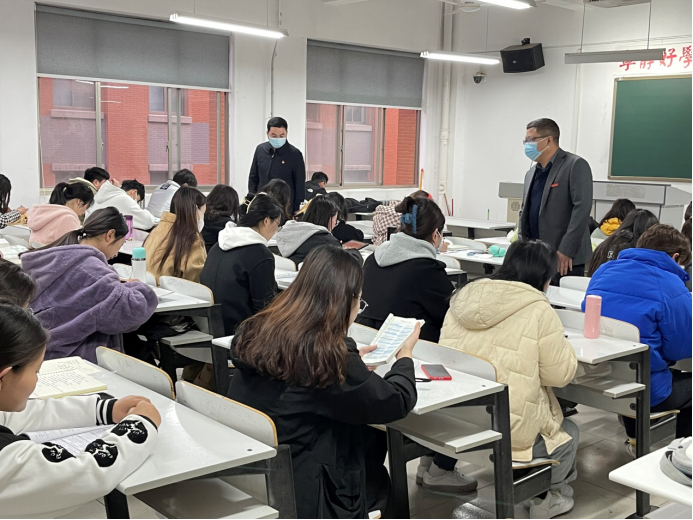 2月28日上午7点,我院2019级学生在2号教学楼3层进行早读活动,杨松柏院长,宋森书记,张卫丽副院长,各专业教研室主任、辅导员及兼职班主任深入各班晨读教室,督促学生们尽快进入良好的学习状态,身心回归课堂。为了更好的督促考研班学生养成良好的学习习惯,我院针对每个班级配备了“辅导员+兼职班主任”制度,辅导员负责学生的安全管理工作,兼职班主任负责考研指导工作。晨读结束后,辅导员及兼职班主任召集各班班长,了解了各班的晨读情况,班长们表示大学学习环境本身比较宽松,坚持晨读培养了他们早起的好习惯,为他们创造了一个良好的学习环境和浓厚的学习氛围。