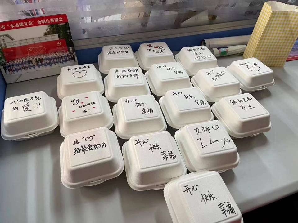 活动前,我院青年志愿者们将事先准备好的每个花束中插入贺卡,每张贺卡都写着对老师的深切祝福。