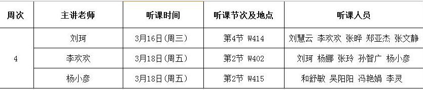 教学观摩活动是实现教师间互动交流,促进青年教师成长,进一步提高课堂教学有效性的重要抓手。工商管理教研室按照副高、讲师、助教三个职称段,以杨小彦、李欢欢、刘珂三位老师的课堂教学为听课主阵地,有序开展全员听课评课活动。