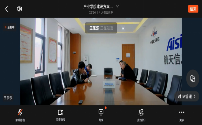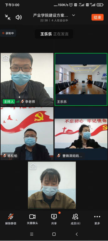 为持续加大应用型人才培养力度,强化校地校企合作,加强实习实训和产教融合,3月30日下午,工商学院和航天信息股份有限公司进行线上产业学院建设论证会。航天信息的金税产业部部长刘孟波、副部长王乐乐、业务经理张振江参、我院杨松柏院长,张卫丽副院长,李鸿春、张倩丽主任参加了此次会议。
