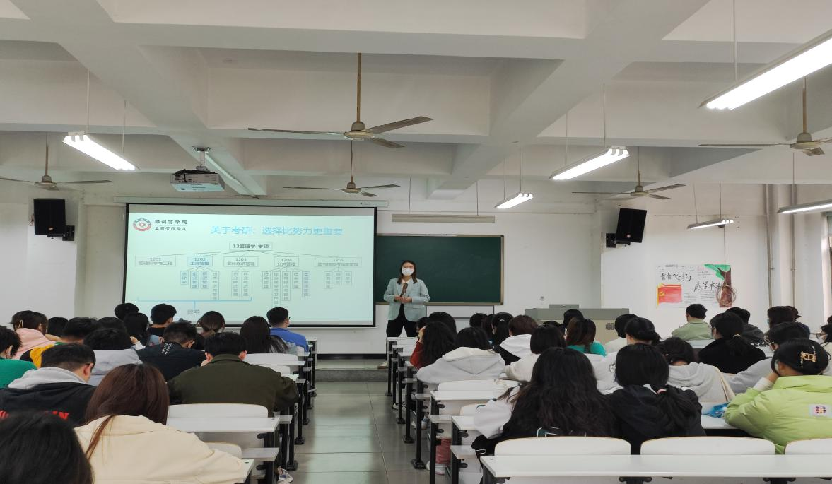 4月15日上午第四节在2号楼301教室针对2019级工商专业学生召开考研指导交流会。此次考研指导会从学生选择报考学校、考研专业和考研地区等方面指导学生在考验过程中如何进行规划,从而更好地计划考研进程,提升工商管理考研升学率。