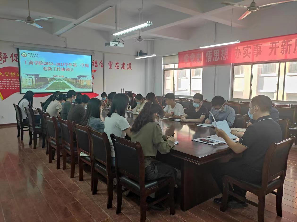 为全面贯彻落实学校疫情防控政策,确保在校生和2022级本专科新生开学工作平稳有序开展,9月20日下午,工商学院在2号楼二楼会议室召开2022-2023学年第一学期本专科迎新工作协调会和第五周学务例会。工商学院党委书记宋森、团委书记董文浩及全体辅导员参加会议。