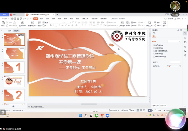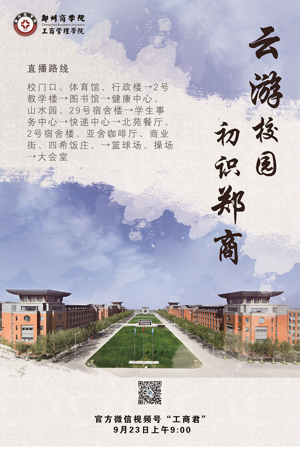 同时,为使新生更好地适应校园生活,全面了解学校,感受丰富多彩的校园生活,9月23日,工商学院通过官方微信视频号-工商君开展“云游校园 初识郑商”直播活动,使新生全方位感受校园之美。