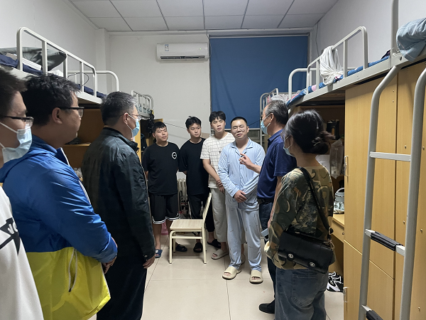在走访学生宿舍过程中,领导们亲切询问了学生的家乡情况、学习情况、生活情况以及对学校的意见建议,并就住宿环境、饮食问题、学习就业以及思想动态等方面与学生进行了交谈,叮嘱同学们严格遵守疫情防控期间学校的各项管理规定,做好个人防护,保持良好宿舍卫生,提醒同学们在疫情防控期间养成良好的生活习惯和积极的心理状态。