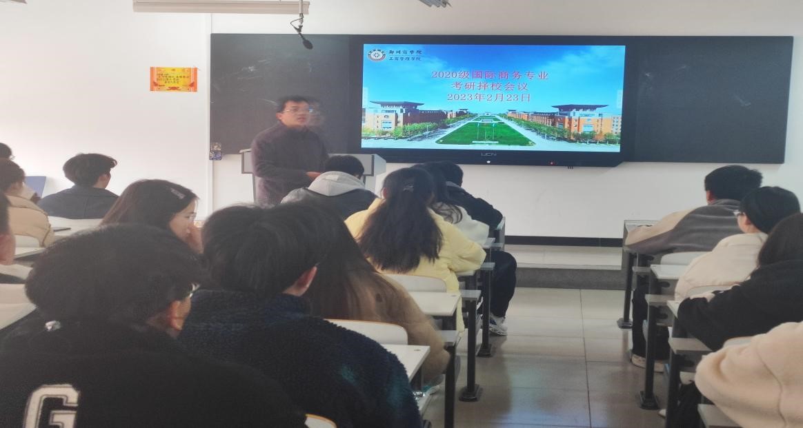 为加强学生学风建设,进一步调动国际商务专业学生考研的积极性,增强考研信心,提升竞争力,3月22日,2号教学楼202教室召开2020级国际商务考研择校动员会,学科教研室主任刘法权、兼职班主任刘慧云到场分享择校经验。