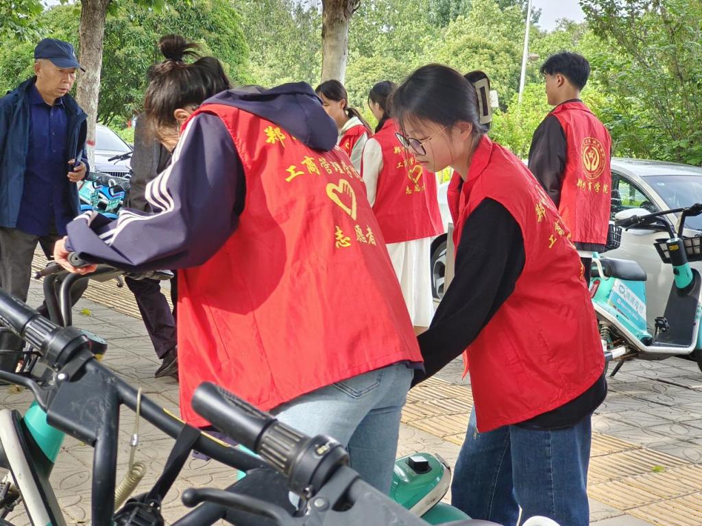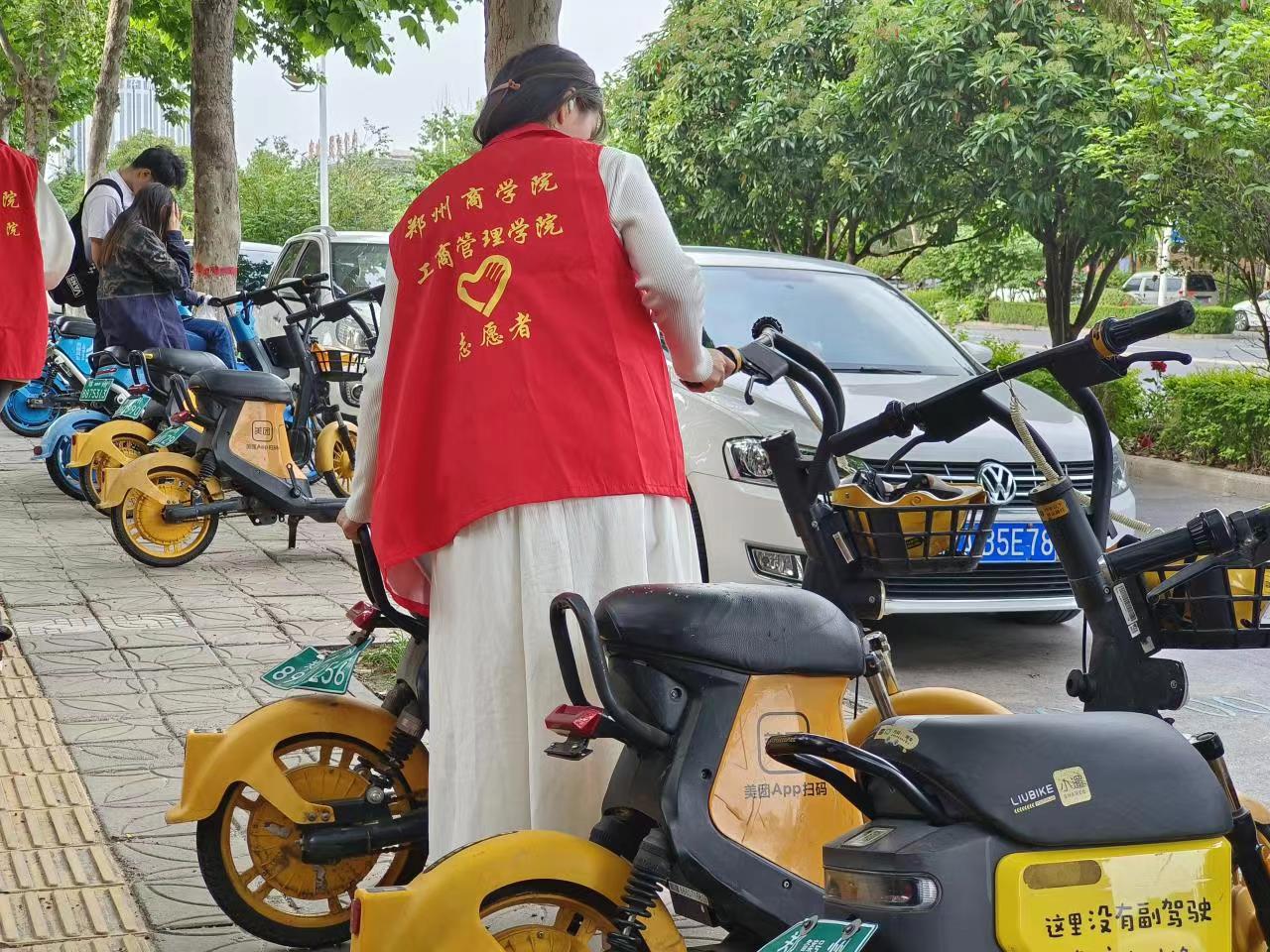 为加强校园文明建设,规范共享单车停放秩序,倡导同学们健康文明出行,同时提高同学们参加社会公益劳动的意识,5月8日,我院开展以“共建共治共享文明,志愿自觉自身先行”为主题的文明摆放共享单车志愿活服务活动。