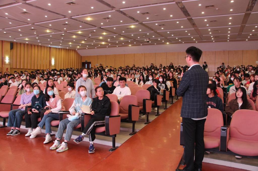 李帅校友以“勇担时代使命 不负青春韶华”为主题,为各位同学分享了他的故事。以学为要,唯真求实,才能厚积薄发。他告诉同学们大学时光异常宝贵,要树立远大目标,努力学习,充实自己,并分享了自己的大学生活。明确目标,义无反顾,才能行稳致远。当前社会信息发达,瞬息万变,竞争日益激烈,要提前做好规划,明确目标,做好充分准备。他详细讲解了国考、省考、选调生的考试过程,并分享了自己的学习方法。忠于选择,重于坚守,才能行胜于言。他讲述了在基层工作的这些年,在疫情防控中,连续五个月坚持在一线岗位,在大雪中值班值守,守一方安宁;在洪水来临时,与群众一起搬沙袋、修堤坝;在脱贫攻坚中,走遍村里的家家户户,想方法,制计划,使全村脱贫致富。不怕困难,永不言败,才能有所作为。有风有雨是常态,在基层工作中,有挫折和失败是经常性的,所幸学会了正视自己的不足和缺点,及时反思,最终克服了困难。在工作的时间里,带领着村民摸索出一条属于他们的致富路,建设千亩桃园种植基地,为村民提供就业岗位,吸引游客到此旅游,使村庄焕然一新。