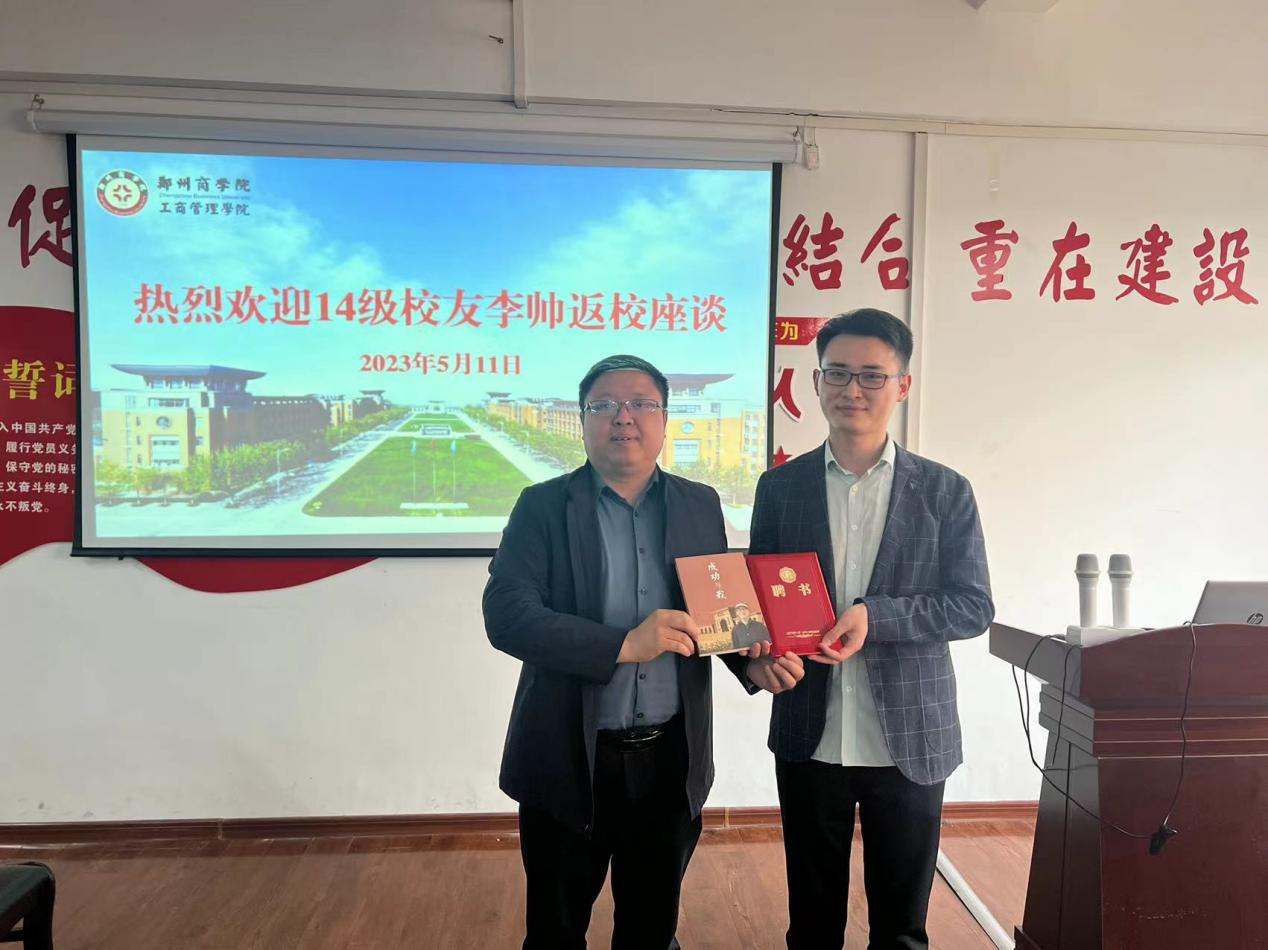 随后,分享交流了自己毕业多年来的奋斗历程和人生感悟。在大家的相互交流中,本次座谈会也渐渐落下帷幕。座谈会最后,杨院长为李帅校友颁发了“校友导师”聘书,感谢他们能够用自己满满的经历为在校生带来更多宝贵的经验。