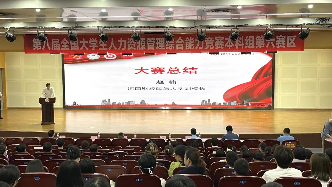 6月11日上午,竞赛闭幕式与颁奖仪式在河南财经政法大学图书馆一层报告厅举行。河南财经政法大学副校长赵楠教授对此次竞赛进行总结。赵校长祝贺第八届全国大学生人力资源管理综合能力竞赛本科组第六赛区在各个单位、院校师生和工作人员的共同努力下成功举办,希望老师们能继续坚守为国育才的初心使命,在教学科研上精诚合作、开拓创新,不断提升人力资源管理专业建设水平,希望同学们在今后的学习生活中继续展示当代大学生的专业知识和技能风采,展现年轻一代的使命担当和青春活力。