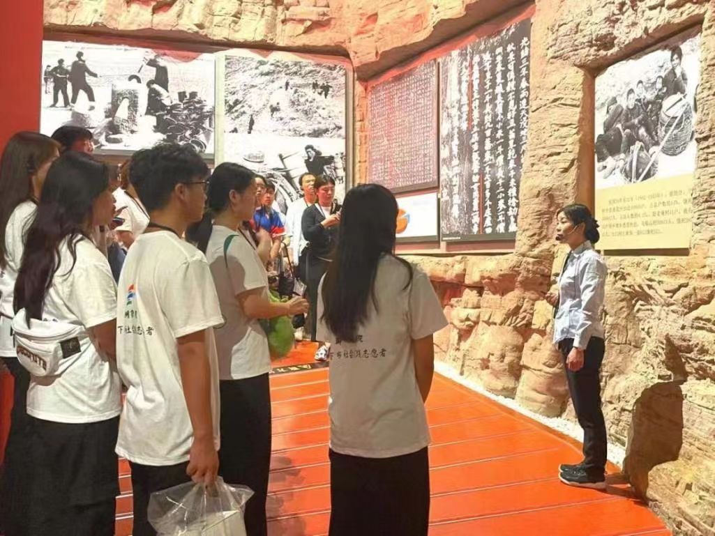 7月3日下午,指导老师魏瑶带领团队成员来到红旗渠纪念馆,其整个展厅由千年旱魔、世代抗争;红旗引领、创造奇迹;英雄人民、太行丰碑;山河巨变、实现梦想;继往开来、精神永恒五个部分组成,馆内陈设着当年林州人民开山挖渠时使用的工具和在挖渠时的一些照片。团队成员跟随馆内讲解员的脚步,从红旗渠的背景开始,了解到林州人民为什么挖渠,怎样挖渠以及挖渠时发生的令人感动的事情。