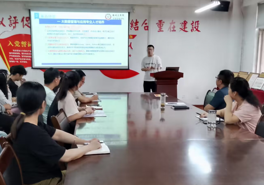 转化会上,孙智广、李鸿春、杨娜、李姗姗、杨舒雅五名教师依次对参会内容进行了分享。孙智广老师做了第十二届高等学校管理科学与工程学科发展与人才培养高峰论坛——中国式现代化与数智管理决策的会议内容分享,根据会议内容总结出了大数据管理与应用专业人才培养之间的关系,最后得出感悟,作为教师,教学时不仅要注意最新的本学科动态,更要交叉关注其他学科,根据不同课程的特点进行有复合性授课;作为科研工作者,人文社科类学科的科研要和理工科结合,要善于运用各类工具软件,才能达到事半功倍的效果。