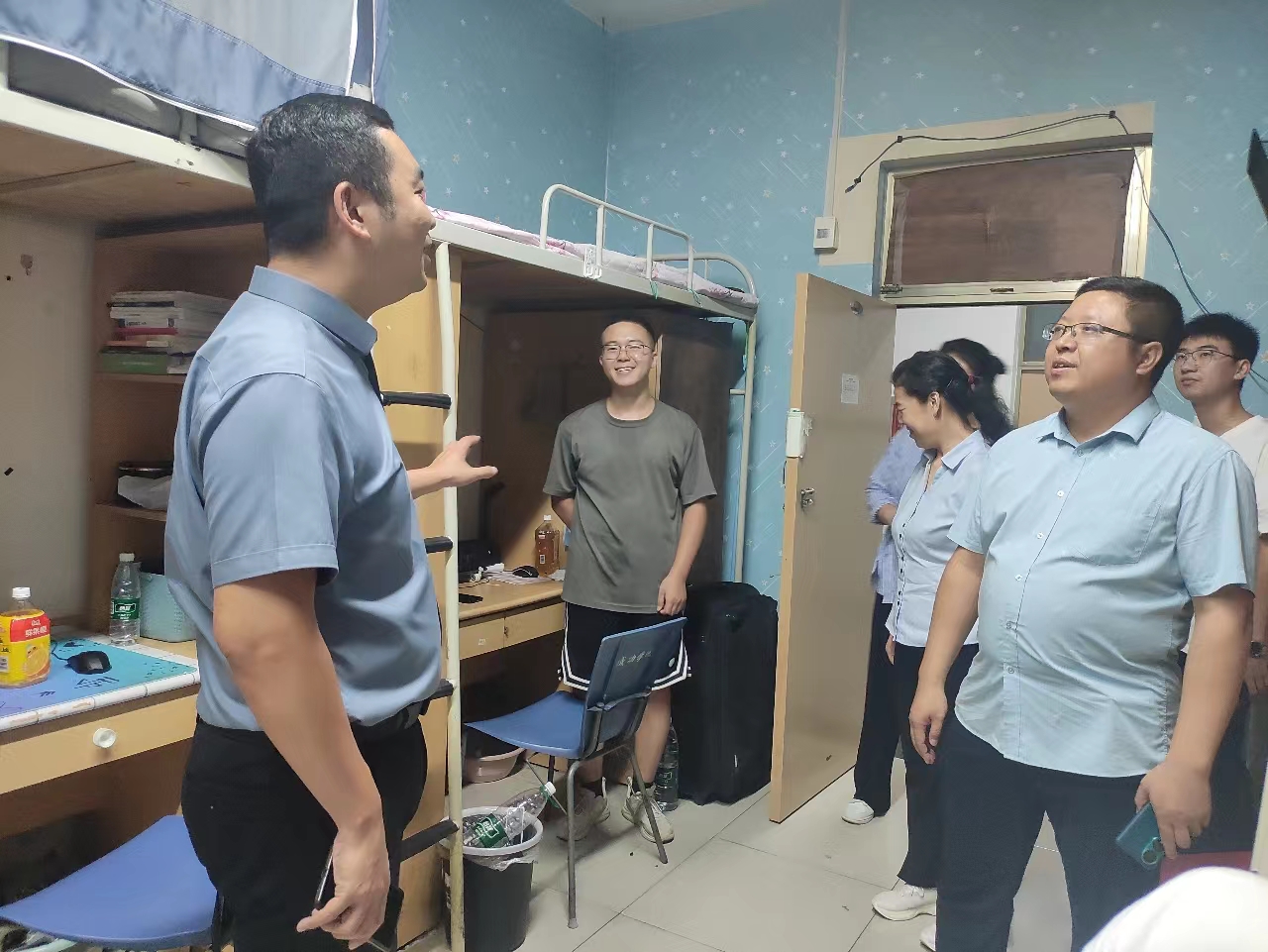 杨松柏院长、宋森书记、张卫丽副院长及23级全体辅导员深入宿舍走访慰问2023级新生,实地察看新生住宿情况并与新生进行亲切交谈,他们从生活用品、安全、宿舍环境等方面,一一进行检查,确保新生入学有良好的生活环境,让同学们感受到学院的关怀,让学生入校如回家,让迎新更赢心。